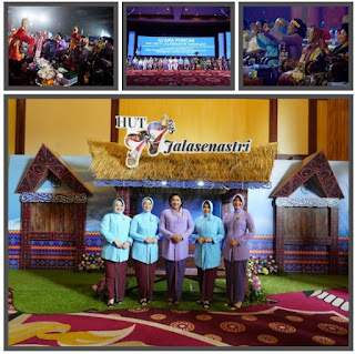 Di sela-sela kegiatan HUT ke-77 Jalasenastri, para hadirin dihibur dengan tarian-tarian daerah yang ditampilkan oleh Ibu-ibu Jalasenastri dan Artis Ibukota. Bahkan, Ketum Dharma Pertiwi itu menerima kain songket dari salah satu penari yang cantik. Ketum Dharma Pertiwi menerimanya dengan wajah senang, gembira dengan senyum menawan.